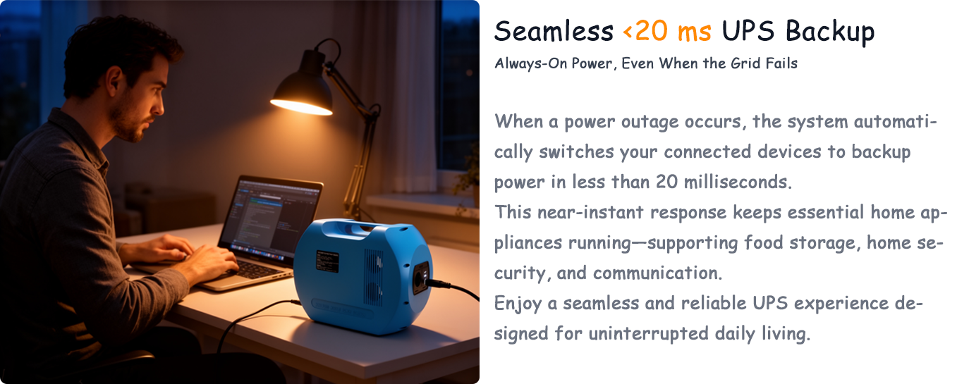 自动电源备份不到20毫秒——快到你甚至感觉不到切换。